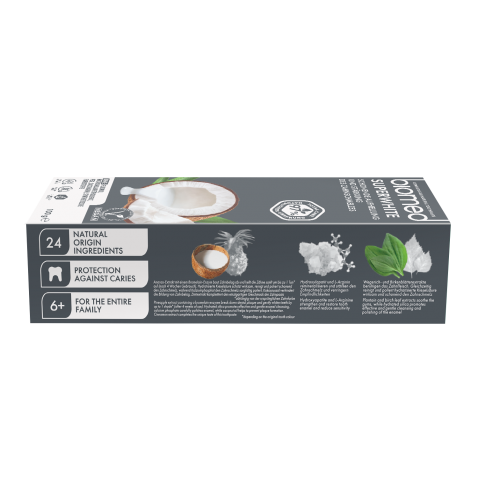 Baltinoša zobu pasta ar dabisku kokosriekstu eļļu un ananasu ekstraktu ļauj iegūt līdz 1 tonim* gaišākus zobus un stiprina zobu emalju, pateicoties aktīvajām sastāvdaļām hidroksilapatītam un L-arginīnam. Ananasu ekstrakts satur bromelīna enzīmu, kas palīdz likvidēt zobu aplikumu un notīra emalju, savukārt kokosriekstu eļļa palīdz novērst aplikuma veidošanos.